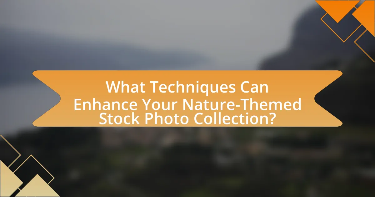 To enhance your nature-themed stock photo collection, utilize techniques such as diverse subject matter, optimal lighting, and post-processing. Diverse subject matter, including landscapes, wildlife, and flora, ensures a comprehensive representation of nature, appealing to a wider audience. Optimal lighting, particularly during golden hours, enhances the visual appeal and depth of images, making them more captivating. Post-processing techniques, such as color correction and sharpening, can significantly improve image quality, ensuring that the photos stand out in a competitive market. These methods are supported by industry standards that emphasize the importance of variety, quality, and aesthetic appeal in stock photography.