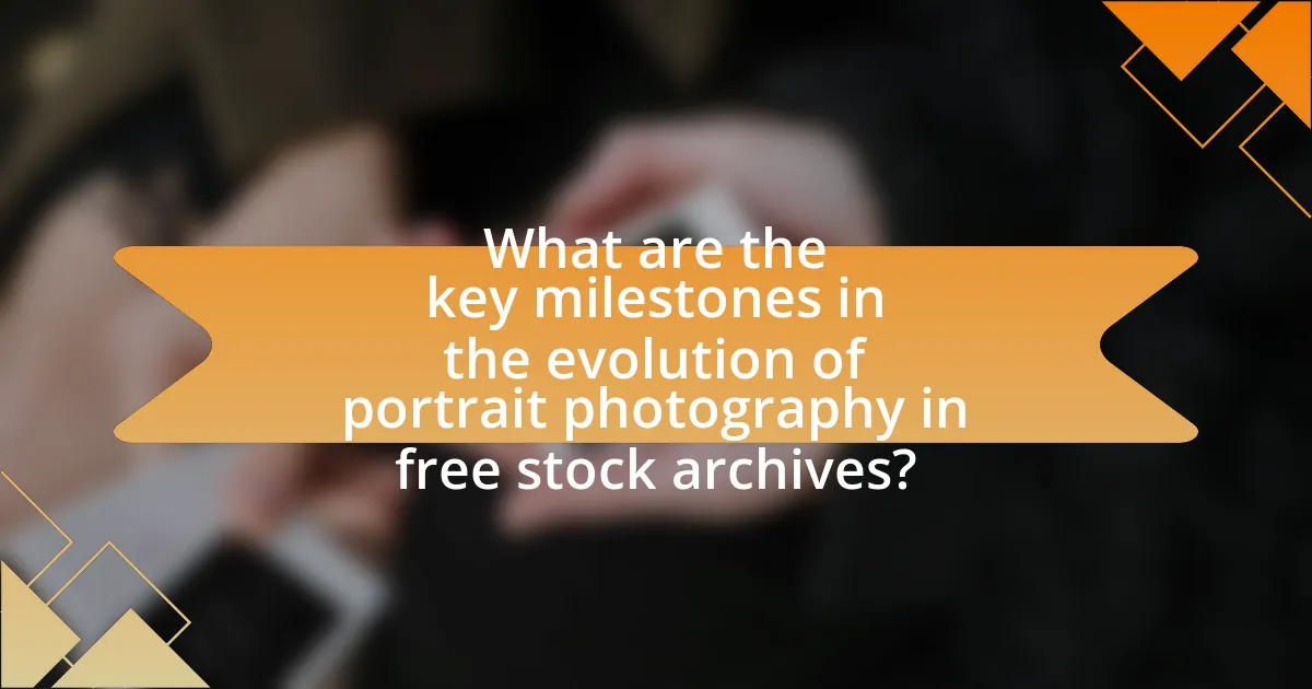 The key milestones in the evolution of portrait photography in free stock archives include the introduction of digital photography in the late 1990s, which made high-quality images more accessible, and the establishment of platforms like Unsplash and Pexels in the 2010s that democratized access to free stock images. The transition from traditional film to digital formats allowed for easier sharing and distribution of portrait photography, significantly increasing the volume of available images. Additionally, the Creative Commons licensing model, adopted by many free stock archives, enabled photographers to share their work while retaining certain rights, fostering a collaborative environment. These developments collectively transformed how portrait photography is created, shared, and utilized in various contexts.