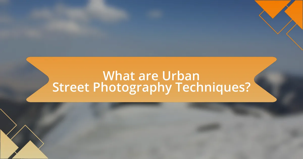 Urban street photography techniques capture specific elements of urban environments such as architecture, human interactions, street art, and everyday life. These techniques focus on the dynamic interplay between people and their surroundings, highlighting the vibrancy and diversity of city life. For instance, capturing architectural details reveals the unique character of different neighborhoods, while photographing candid moments of individuals showcases the social fabric of urban areas. Additionally, street art serves as a visual commentary on cultural and societal issues, further enriching the narrative of urban environments.